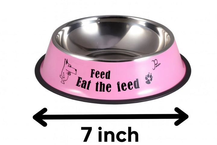 Make mealtime fun and practical with this Pink Stainless Steel Pet Bowl. Designed with the quirky phrase “Feed, Eat the Feed” and a cute cartoon graphic, this bowl adds personality while ensuring your pet enjoys their food in comfort.