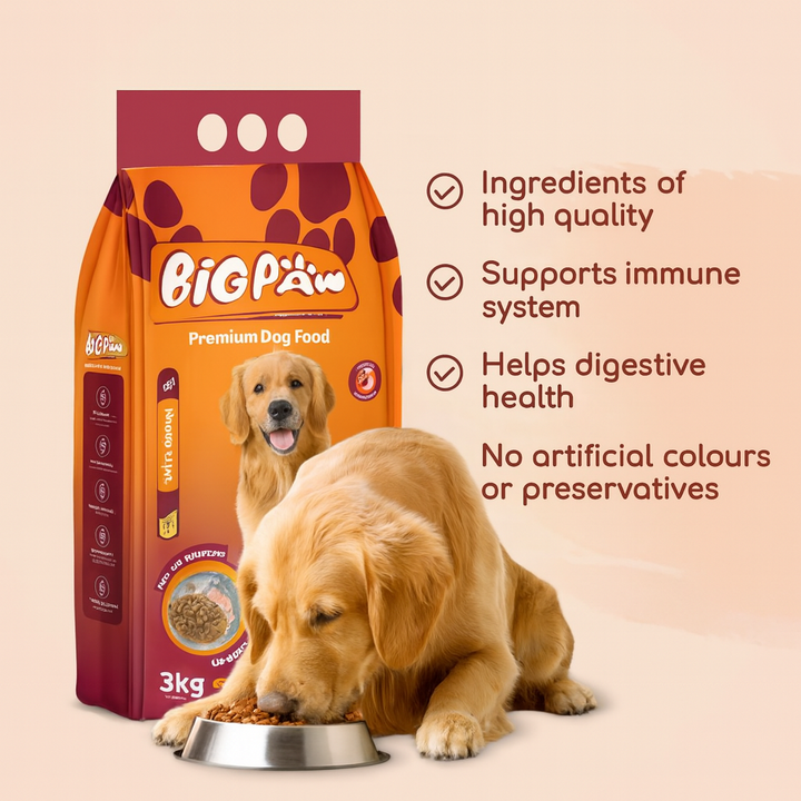 Keep your furry friend healthy, strong, and happy with Big Paw Premium Dog Food. Specially crafted for adult dogs of all breeds, this wholesome recipe with premium whole chicken flavor provides complete and balanced nutrition to support an active lifestyle and overall well-being.