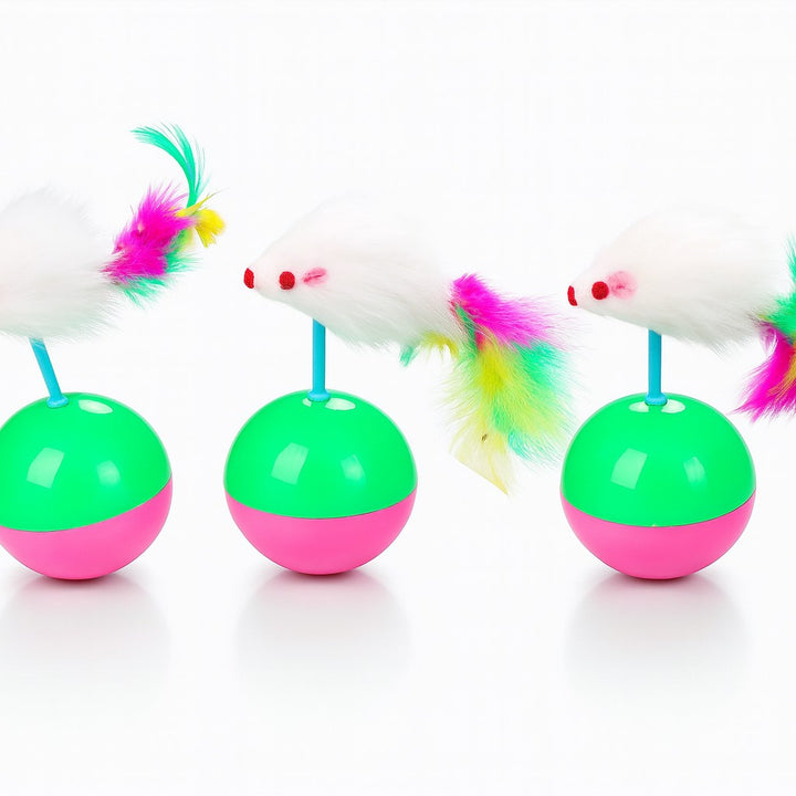Keep your cat entertained and active with this Colorful Mouse & Feather Cat Toy. Featuring a playful mouse design with fluffy feathers attached to a wobbling ball base, this toy is designed to stimulate your catβs natural hunting instincts β encouraging chasing, pouncing, and batting for endless fun.