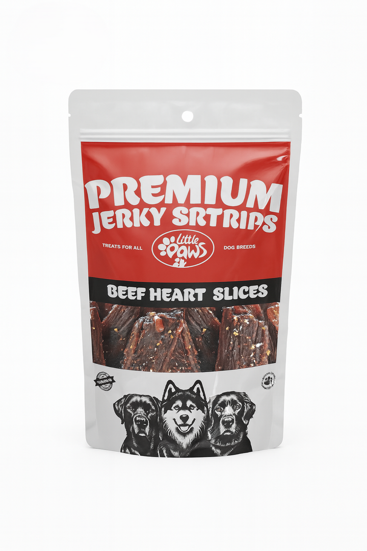 Treat your pup to the delicious goodness of Premium Jerky Beef Heart Slices, only at Poppo Pets! 🐕✨