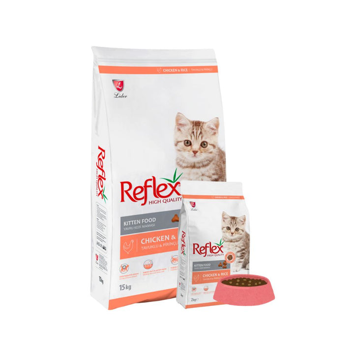 Reflex Kitten Food with Chicken & Rice is specifically formulated to help kittens lead a healthy and happy life. It features chicken as the primary protein source, selected to meet the daily nutritional needs of growing kittens, offering a complete and balanced feeding opportunity.