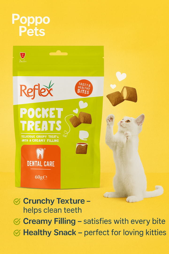 ✨ With Reflex Pocket Treats Dental Care, you’re not only treating your cat to something delicious – you’re also taking care of their oral health, one bite at a time.
