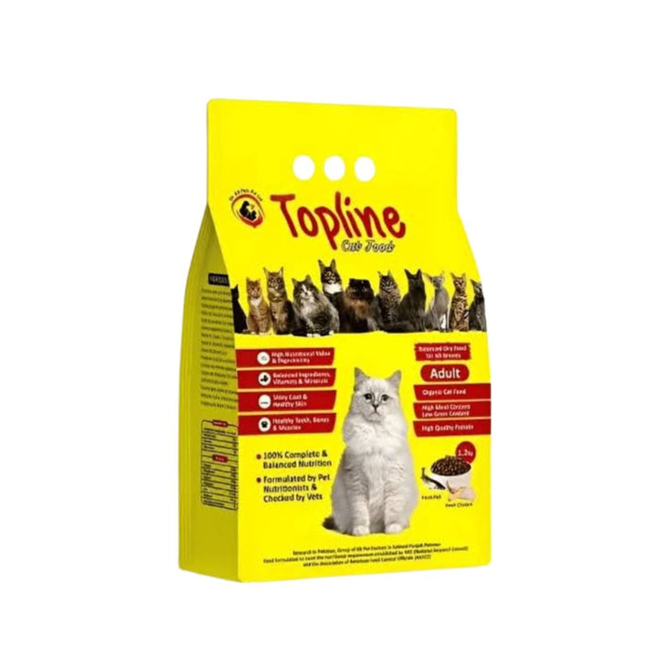 Topline Cat Food 1.2kg Chicken Flavor offers a delicious and nutritious meal that satisfies your cat’s appetite while providing them with balanced nutrition. Made with real chicken as the primary ingredient, this formula delivers high-quality protein that supports your cat’s muscle development and overall strength. Every bite of this dry cat food ensures that your feline friend enjoys the rich, savory taste of chicken, making it a meal they eagerly look forward to every day.