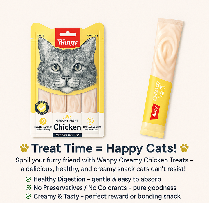 ✨ With Wanpy Creamy Chicken Treats, you’re not just giving your cat a snack – you’re sharing love, care, and nutrition in every lick.