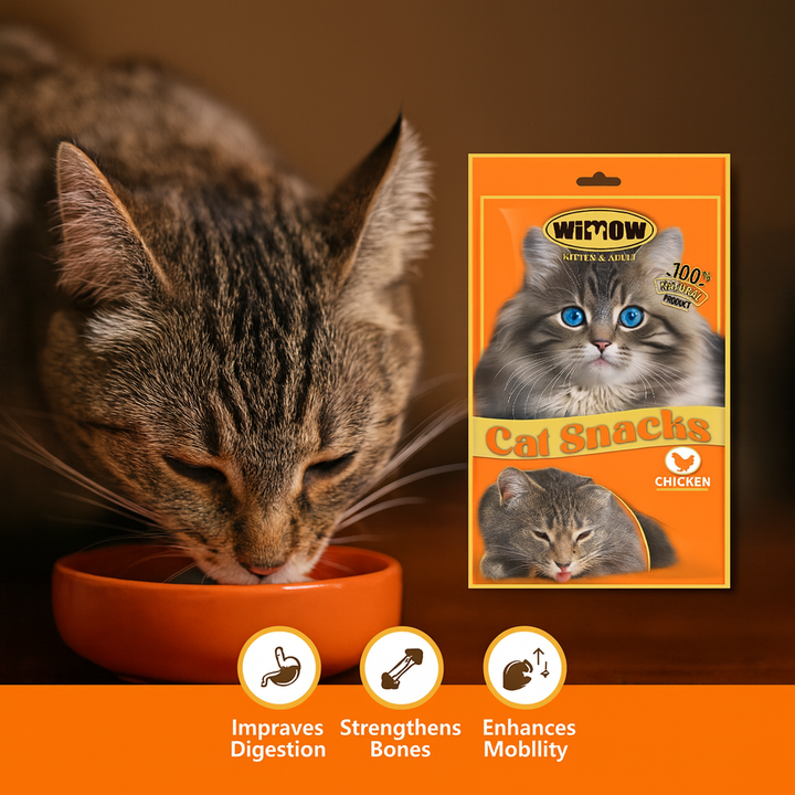 β¨ A healthy, tasty, and natural treat β WIMOW Cat Snacks Chicken are the perfect way to keep your cat happy, active, and full of life.